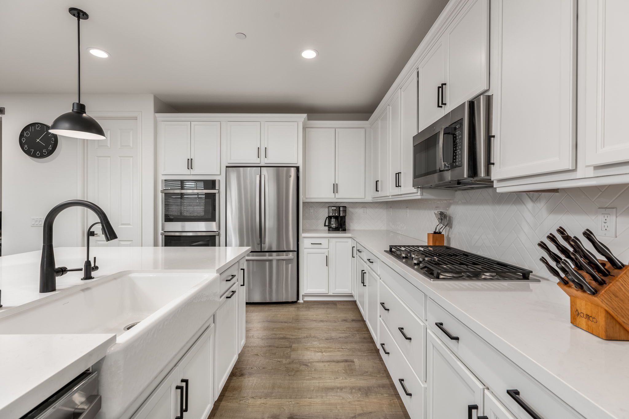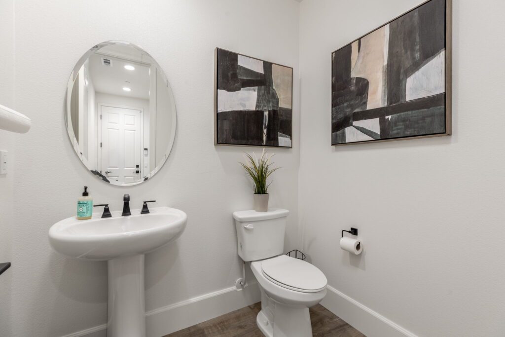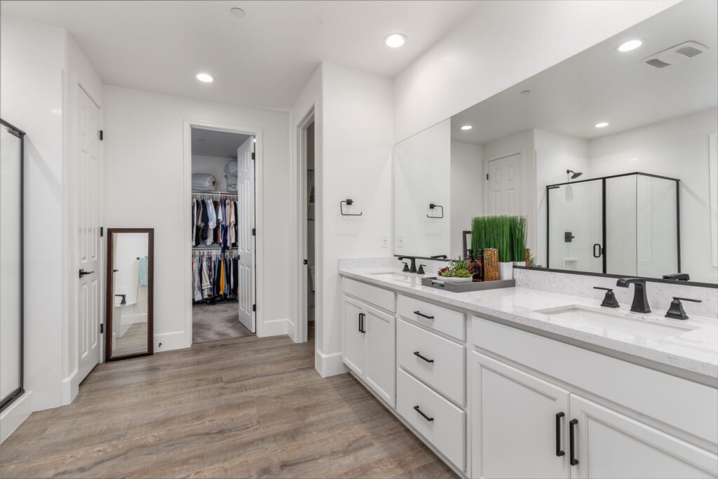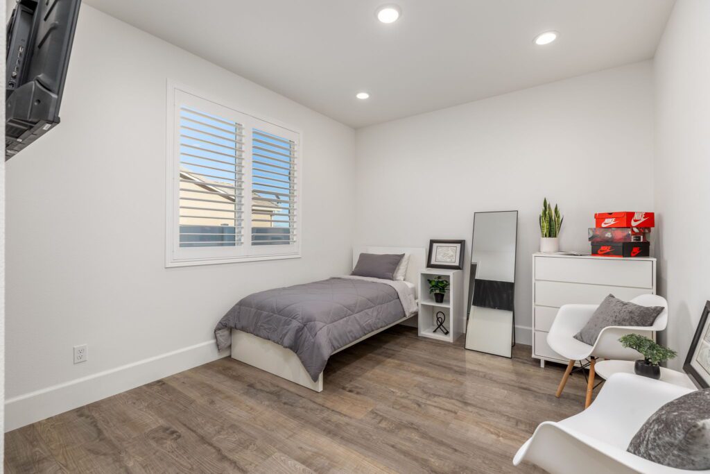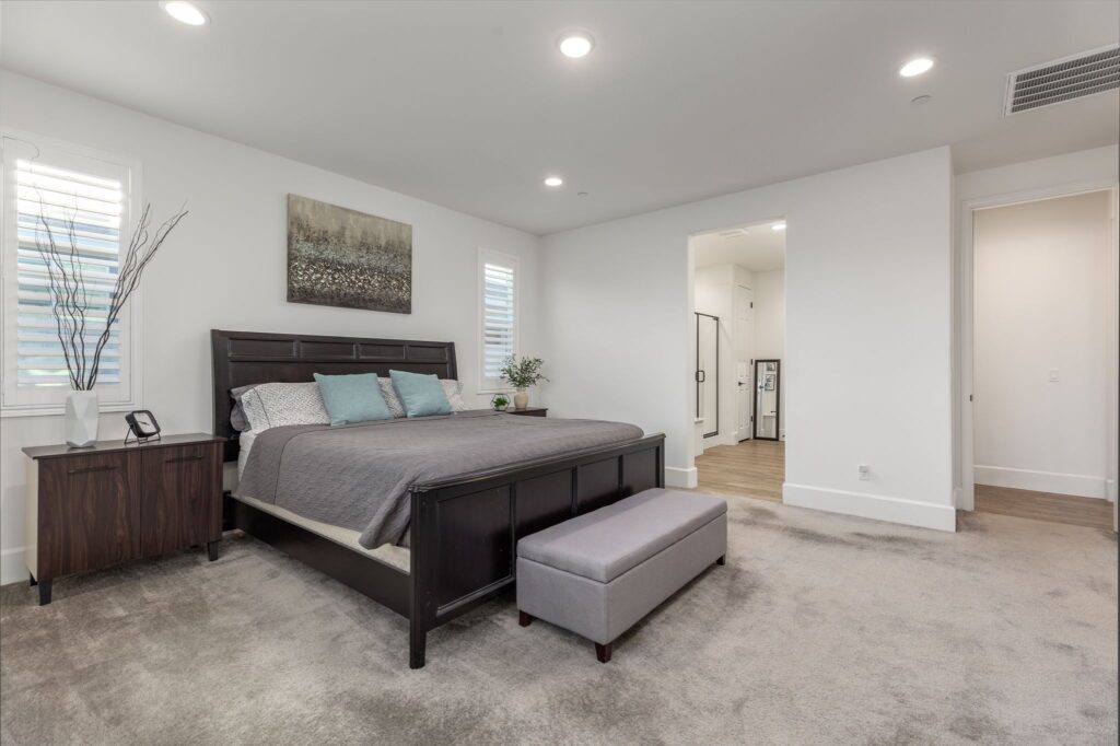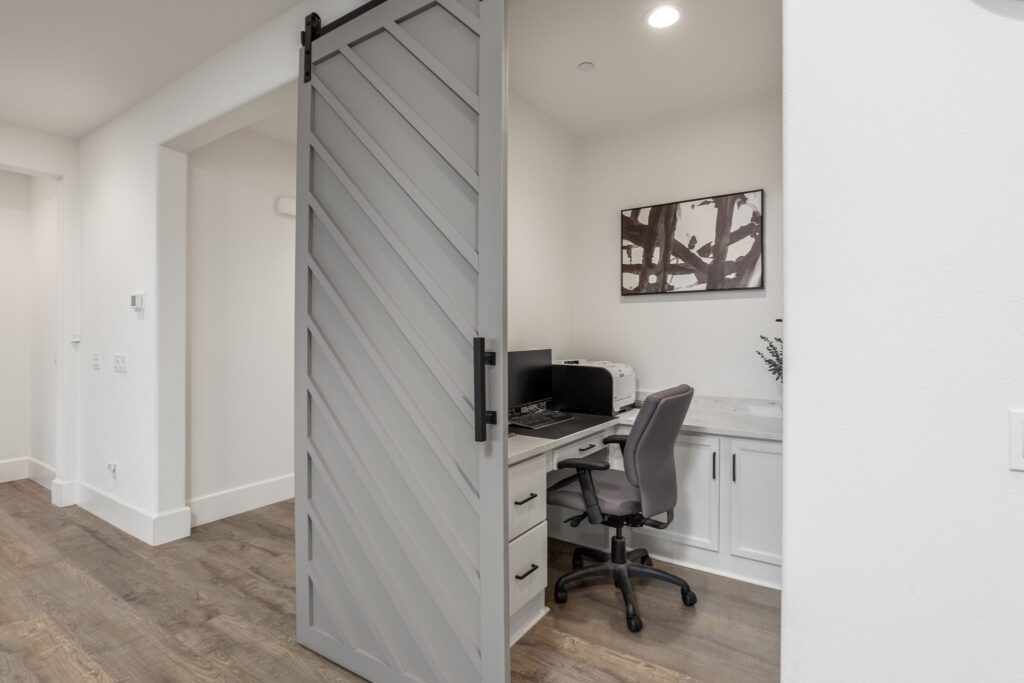 Located in the highly desirable Audie Murphy Ranch ~ built in 2022 ~ this Richmond American built Oxford plan is in excellent condition ~ basically a BRAND NEW HOME – only 2 years old with tons of Upgrades and an Open Floor Plan! No Rear Neighbors and enjoy Mountain Views in this 2,605 Sq Ft home with 3 bedrooms, 2 1/2 bathrooms, PLUS a Den/Office (that could easily be a 4th bedroom). Additional features include stunning upgraded Luxury Vinyl Plank flooring, Tall Baseboards, and a Tech Room. The front and backyards have been fully Landscaped (owner invested over $45k for landscaping alone). Ask about the MLS supplement for a full list of Upgrades (too many to list here!). As you enter, you are greeted by a spacious foyer that leads to a Flex Room, 2 secondary bedrooms and a full bathroom. Continuing on from the entryway, you have a convenient indoor Laundry Room, Powder Room and the entrance to your attached 2 car garage featuring Storage Racks and Epoxy Flooring. You will love the open floor plan as we head into the Living Room which is open to your stunning kitchen featuring Quartz Countertops, Extended Island, Pendant Lighting, Single Basin Undermount Apron Front Sink, beautiful Backsplash, GE gourmet kitchen package with Double Ovens AND the Extended Cabinets option that continues on to your dining area. Behind the barn door you will find the Tech Room with
