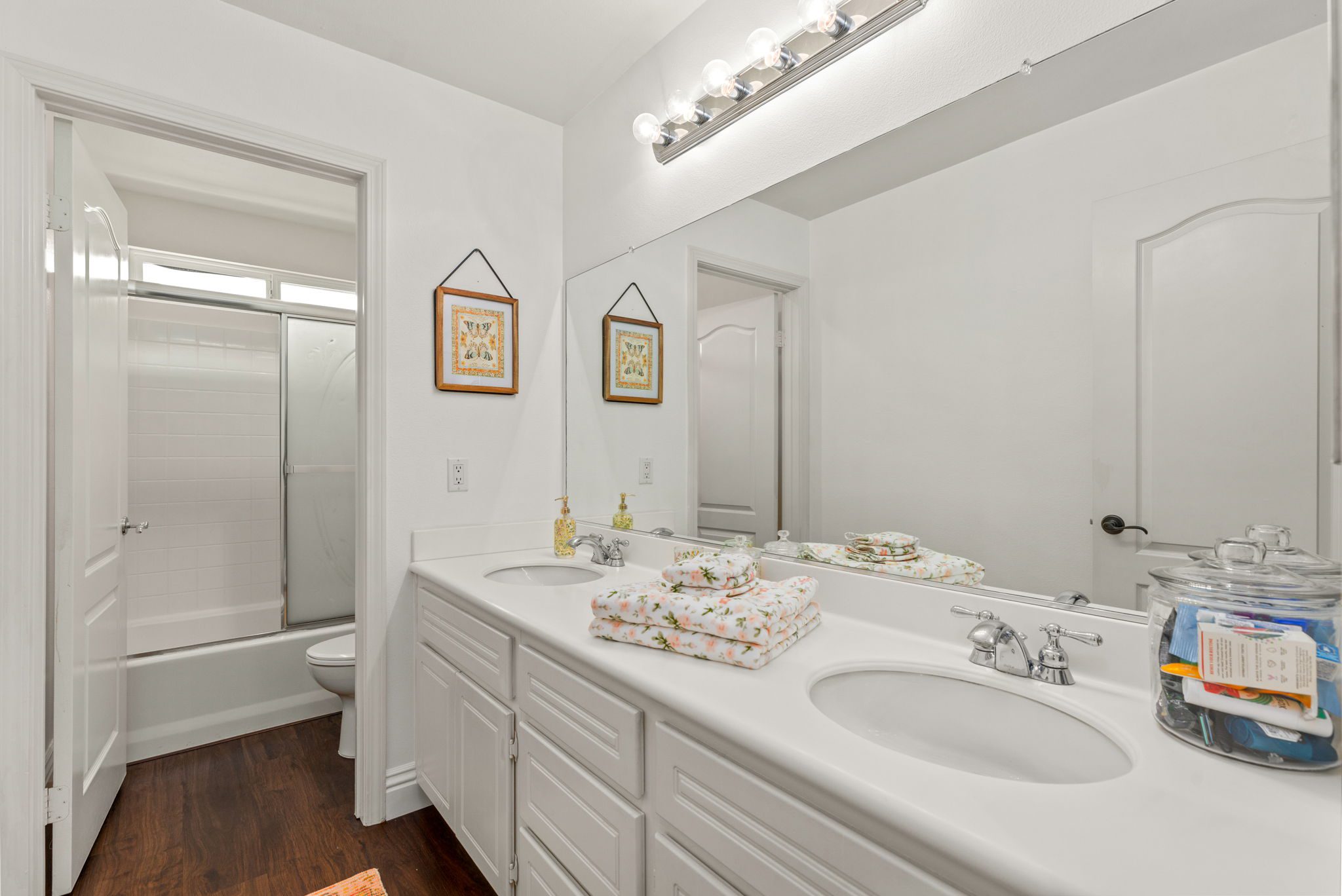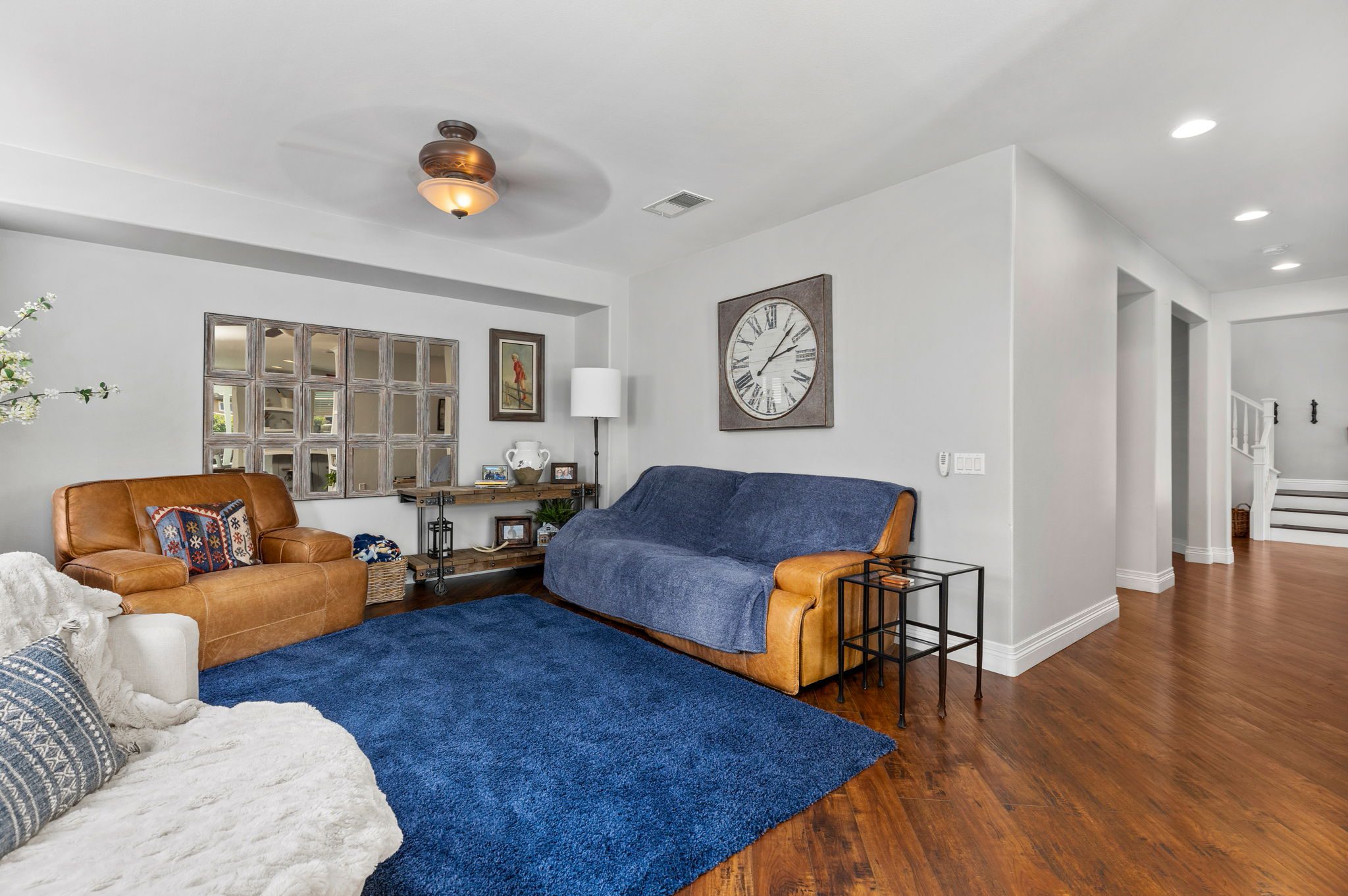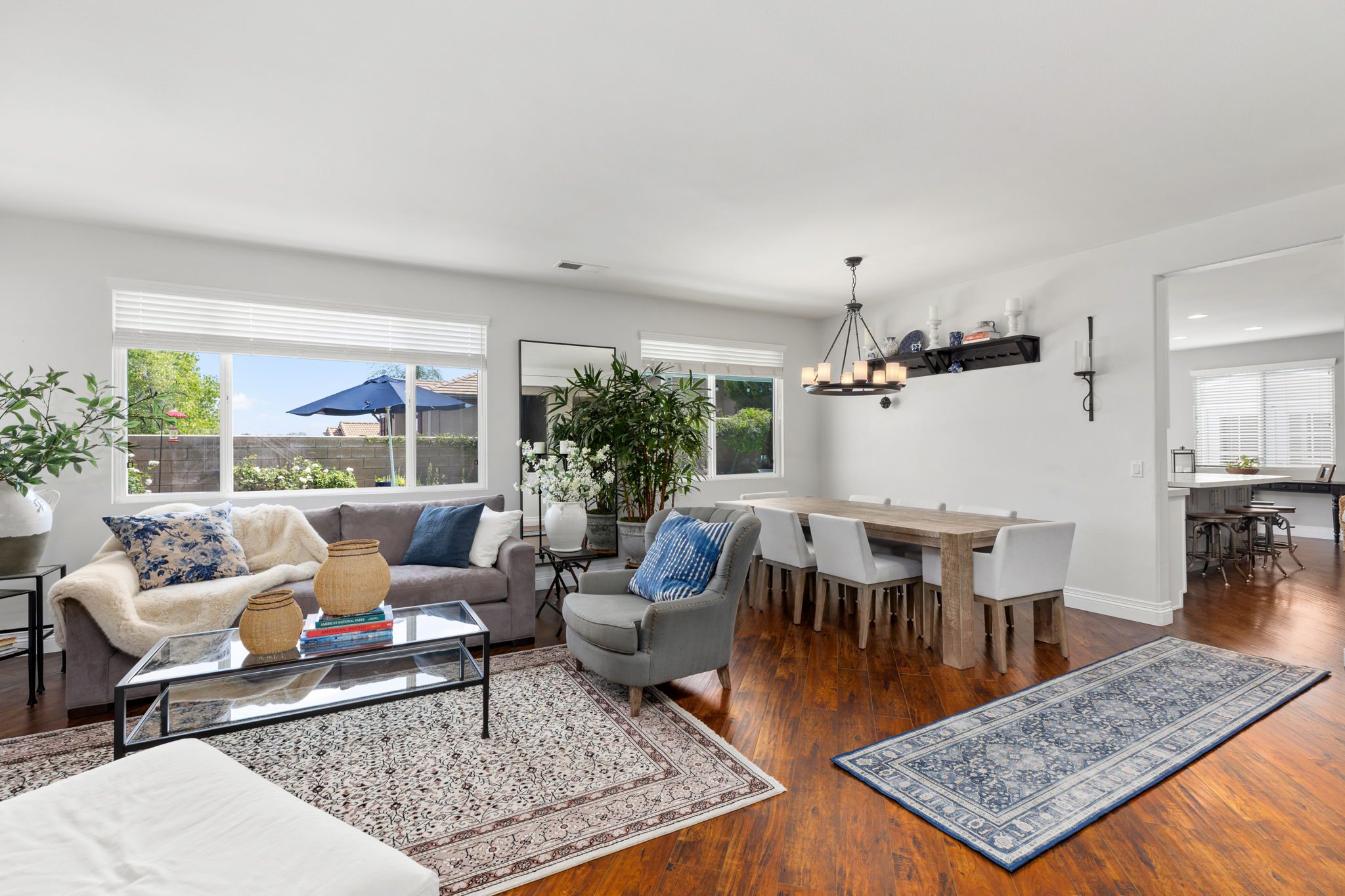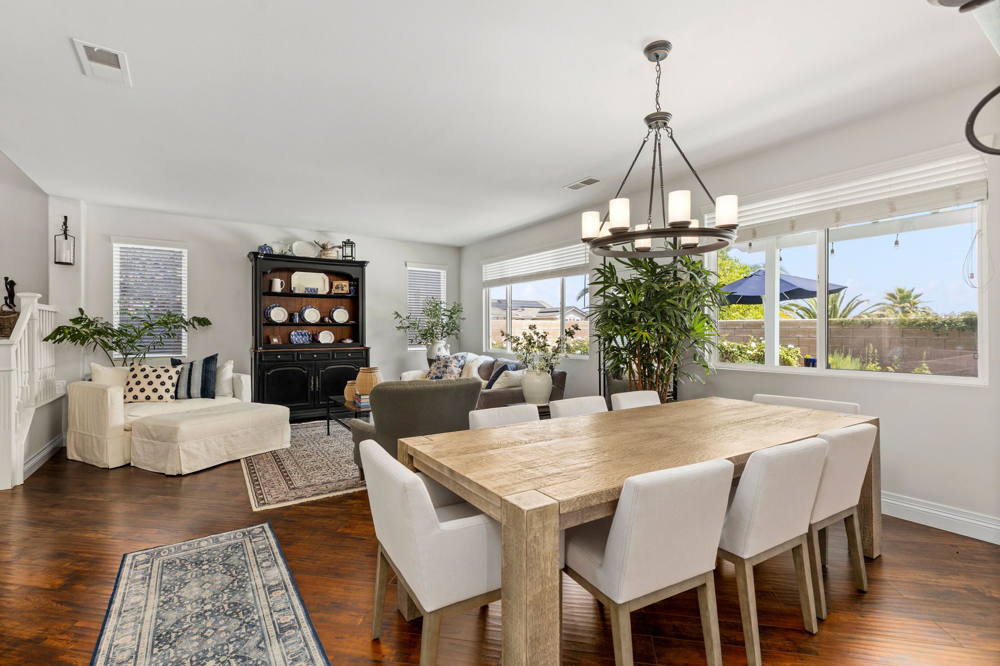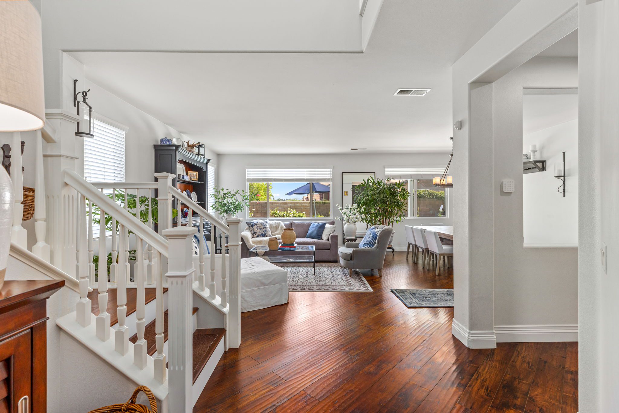 home is the perfect blend of style, function, and energy efficiency. The true showstoppers are the fully remodeled kitchen and the backyard oasis featuring a sparkling pool and spa, ideal for summer barbecues, relaxing evenings, and year-round entertaining. Perfectly positioned on a beautifully landscaped 8,712 sq ft corner lot, this 3,269 sq ft residence is designed with both comfort and practicality in mind. Step inside and you’ll find vinyl plank flooring throughout the first level complemented by many thoughtful upgrades throughout. The heart of the home is the completely renovated kitchen, boasting modern white shaker cabinets with tall upper cabinets and many custom built-ins like a coffee nook, spice drawers and organized storage pullouts. Stunning quartz countertops, high-end appliances, and generous prep space, make it a dream for any home chef. This home offers exceptional energy efficiency with 32 owned solar panels and a brand-new Samsung heat pump HVAC system, plus 5 strategically placed mini-split AC units for customizable comfort. A new Moen Flo and Halo 5 water filtration system supplies the home with pristine water as well as Smart Home controls and leak detection. The home features 5 bedrooms (4 up and 1 down) and 4 full bathrooms, giving everyone their own space. Step outside and discover a private backyard with a sparkling pool, raised spa, and mature landscaping that creates a serene retreat. Additional highlights include an oversized 3-car garage with EV hookups and RV potential on the side of the property, perfect for a smaller RV, boat, or other toys. This location in beautiful Temecula puts you close to everything. Just minutes from the conveniences of Winchester Road where you’ll find grocery stores, shopping, dining, and the Promenade Mall. Temecula’s wine country is only a short drive away, offering countless wineries and breathtaking scenery. With its modern upgrades, energy-efficient features, and entertainer’s backyard, this corner-lot gem offers an incredible opportunity to own a truly exceptional home in Temecula. With its modern upgrades, energy-efficient features, entertainer’s backyard, and a location within the boundaries of Temecula’s highly sought-after schools, this corner-lot gem offers an incredible opportunity to own a truly exceptional home in one of the valley’s most desirable NO HOA communities.
