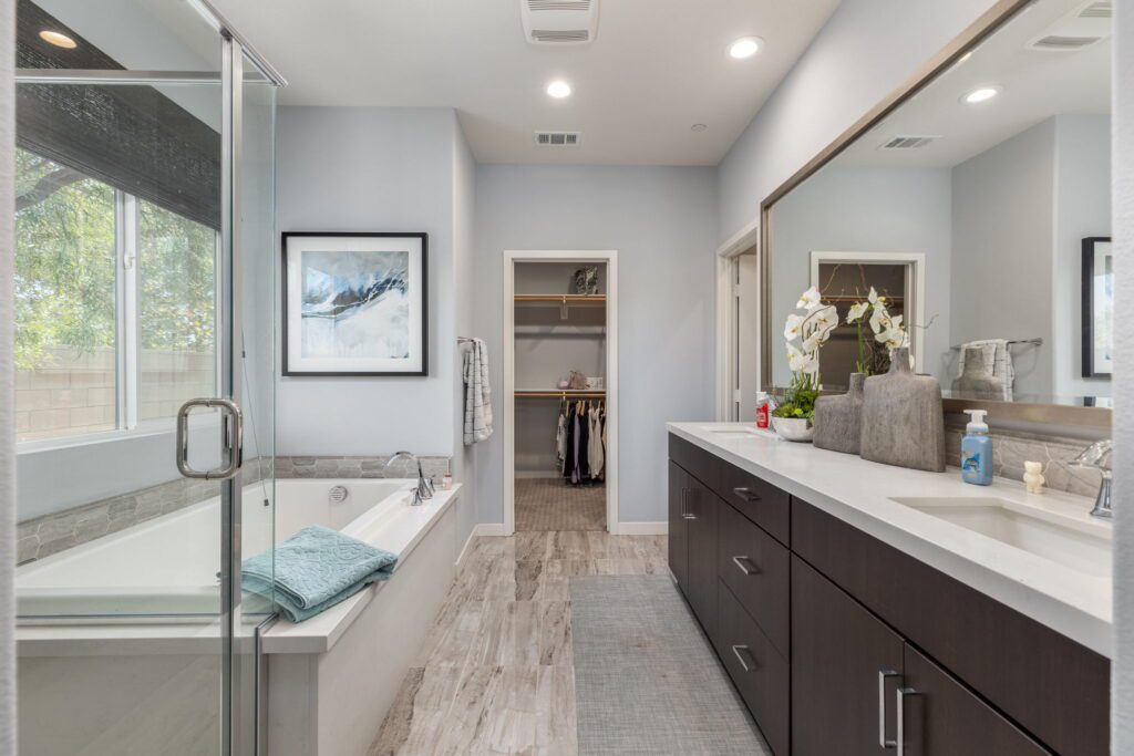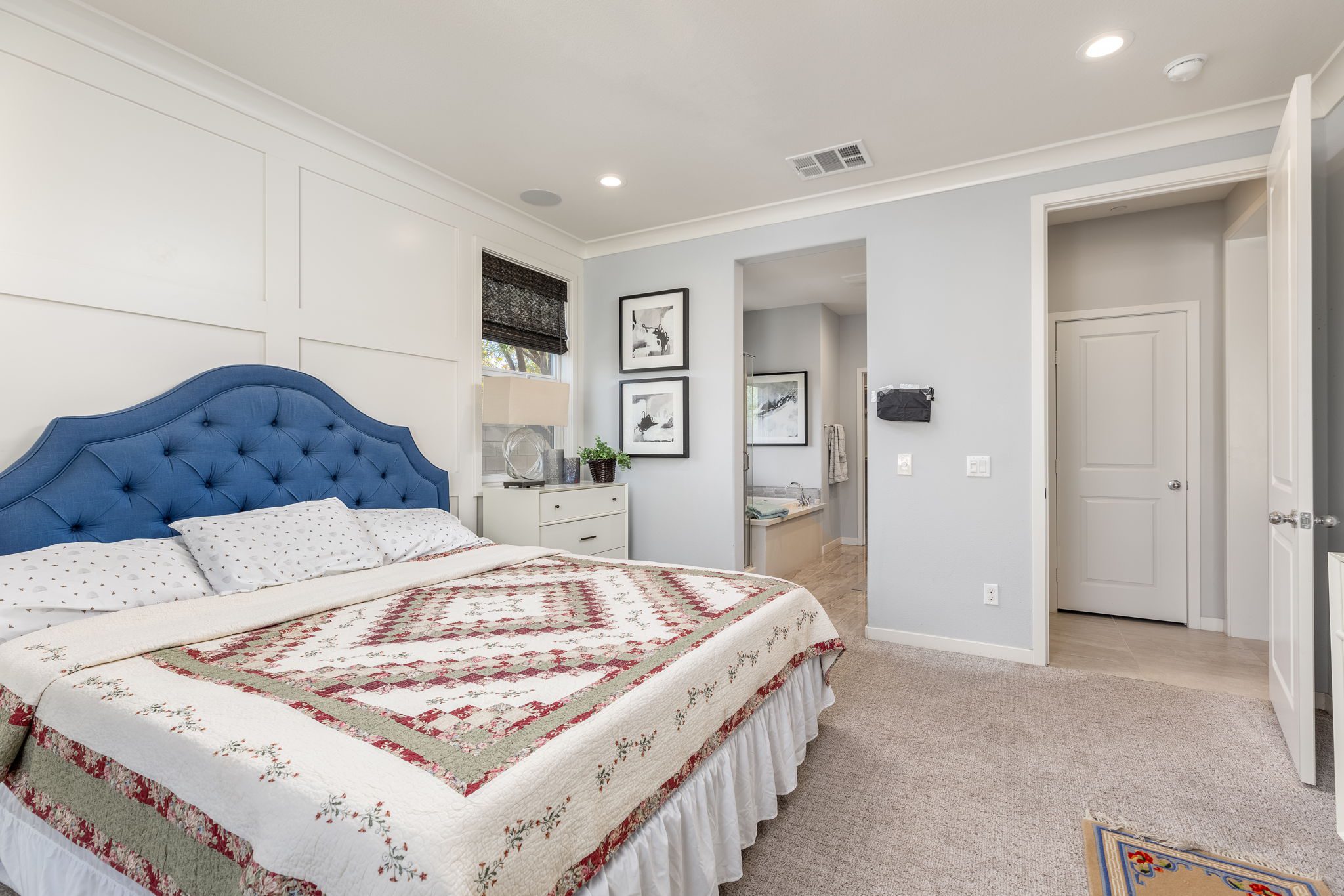 molding and a fabulous ensuite bathroom with large soaking tub, custom tile work, quartz countertops, dual undermount sinks and a large walk in closet.
