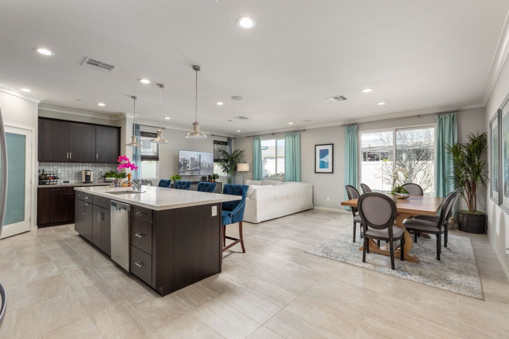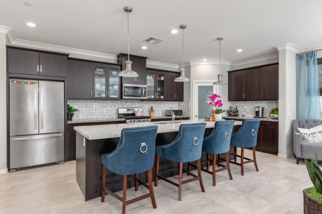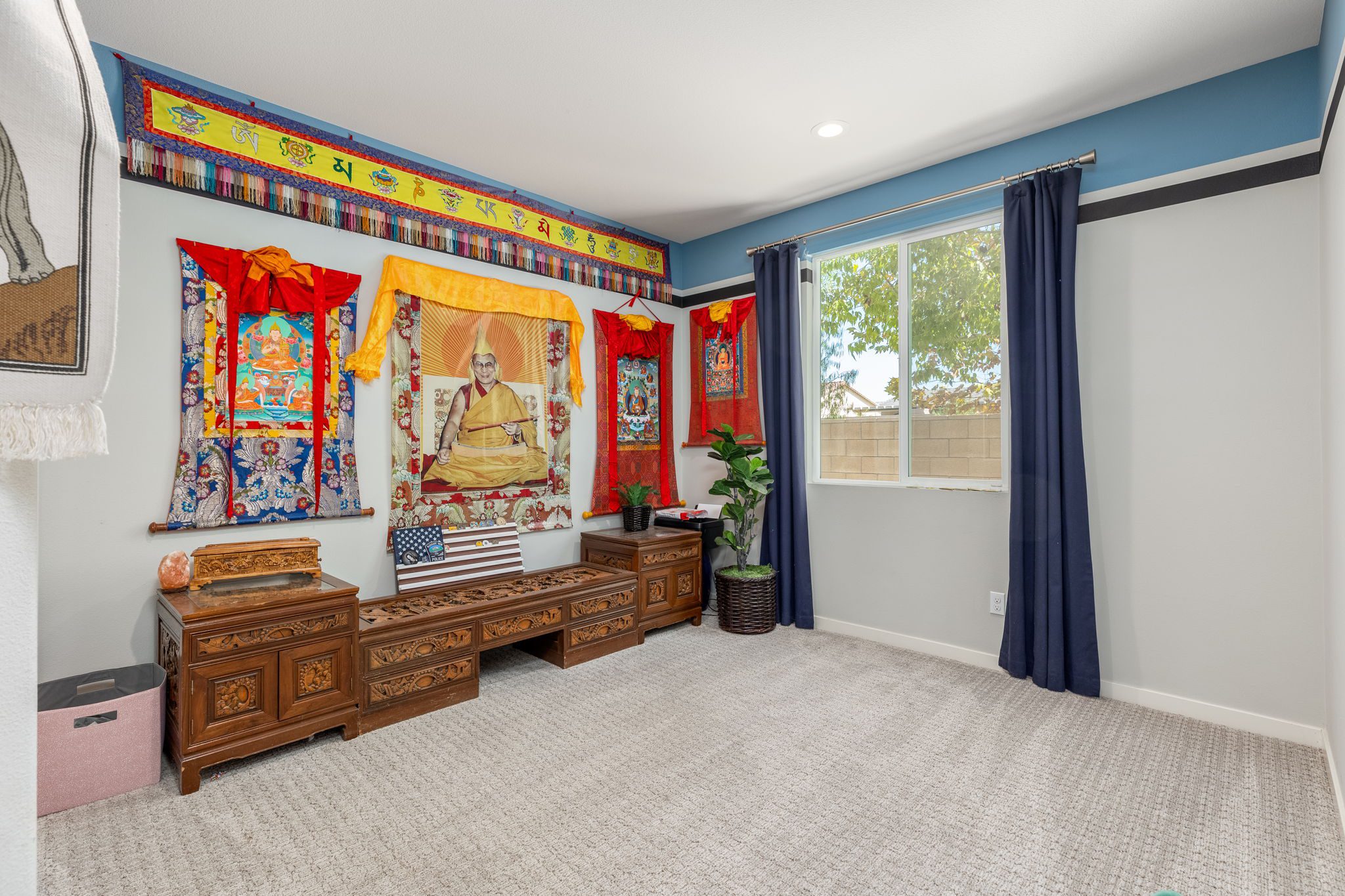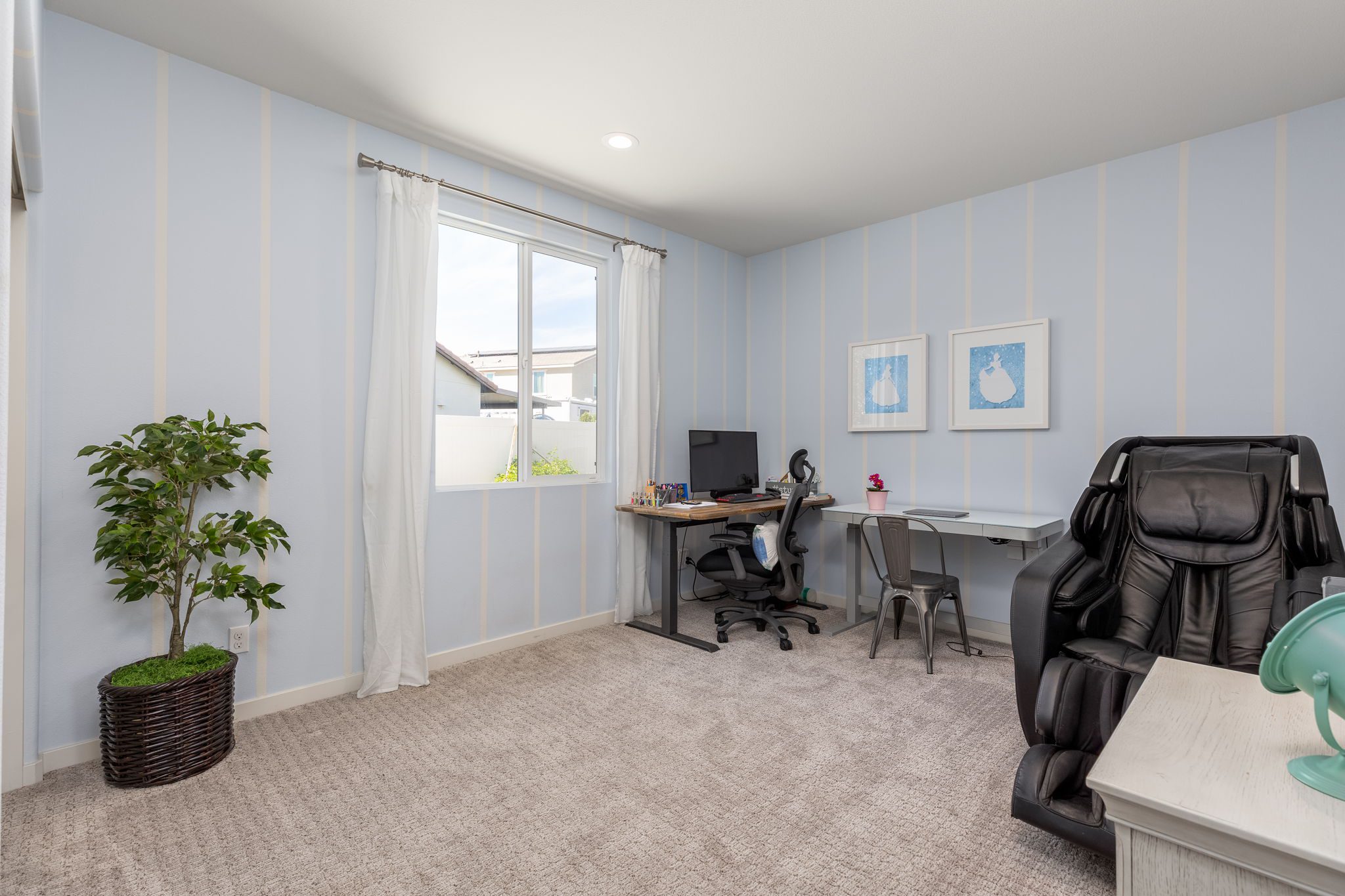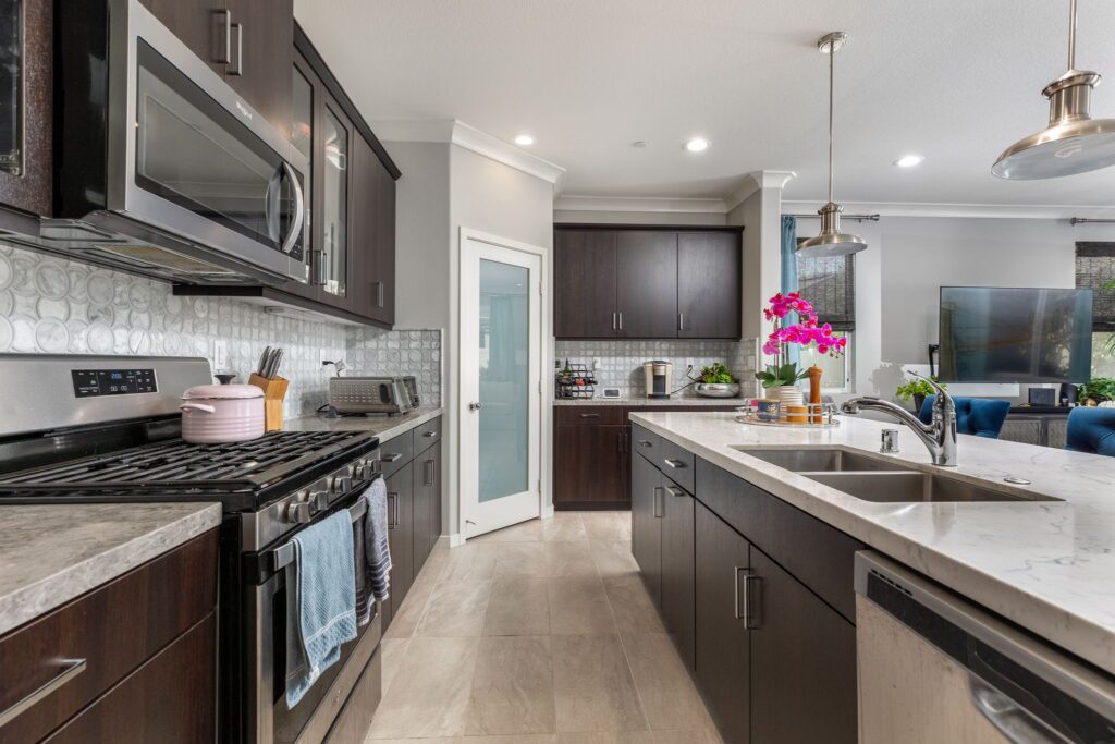 Heritage Park which has a baseball diamond, soccer field and kids playgrounds! Built by Beazer Homes, this Single- Story home has 4 bedrooms, 3 bathrooms and an Open Floor Plan. The kitchen features a HUGE island with stainless steel undermount sink, Quartz countertops, custom backsplash, custom cabinets and pendant lighting. Just off the living area, you will find the Primary Suite overlooking the backyard featuring a custom window pane accent wall, crown